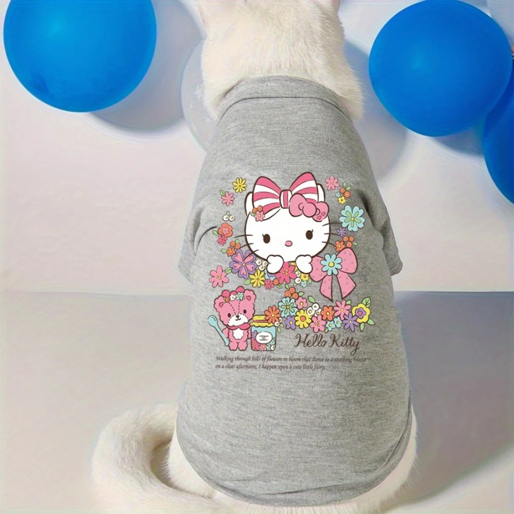 1 Sanrio Fashion bedrukt huisdier-T-shirt, vezelmateriaal geschikt voor binnen- en buitenrecreatie, katten en honden