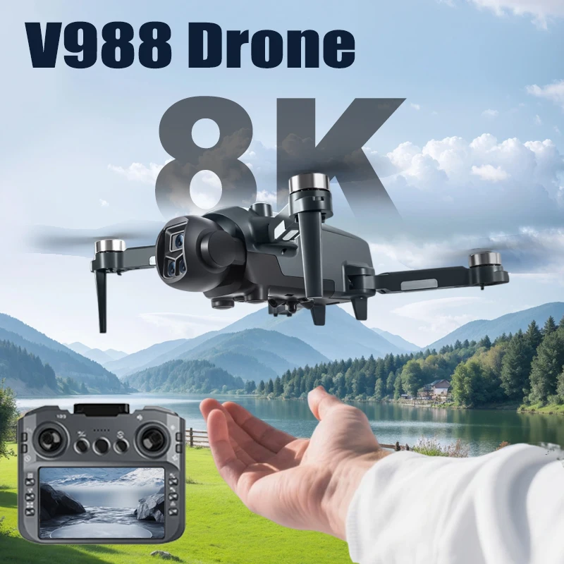 Originele V988 Drone 8K HD Dual Camera 4K Professionele afstandsbediening met scherm 5G WIFI borstelloze motor Opvouwbare Quadcopter speelgoed
