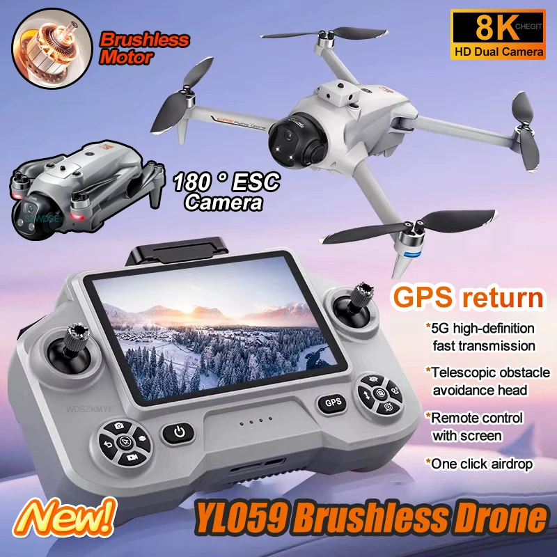 YL059 GPS Professionele Drone Met Scherm Quadcopter Fly 3000m Obstakel vermijden 8K HD Camera Airdrop Mini Dron 5G Borstelloze UAV