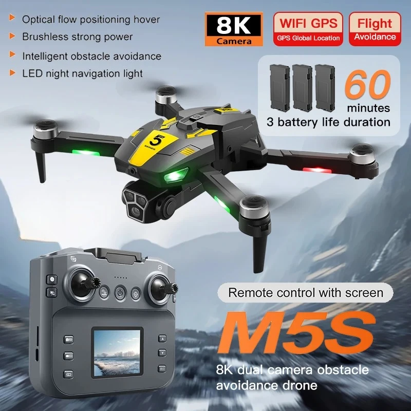 M5S 4K Schermgestuurde Drone 8K Professionele Camera Borstelloze Motor Obstakelvermijding Opvouwbare Quadcopter Drone RC Speelgoed Cadeaus