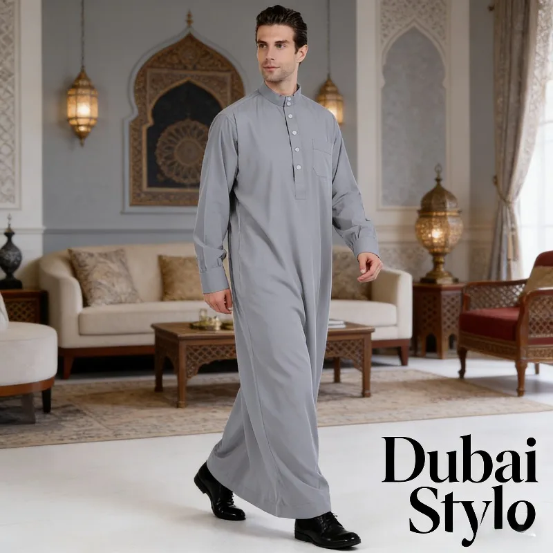 Qatar Stand Collar Heren Thobe Robe Polyester Zakontwerp Arabisch Midden-Oosten Dubai Reiskleding Lichtgewicht Culturele Look