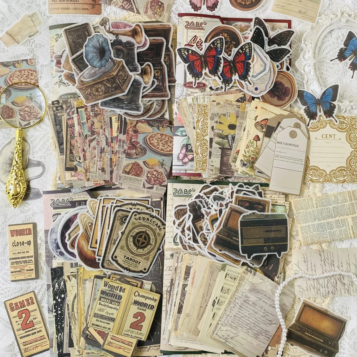 Journamm 200 vellen Scrapbook Pack Vintage Series Notebooks Stickers Materiaal Papier Washi Papier Stickers Scrapbook Decoraties