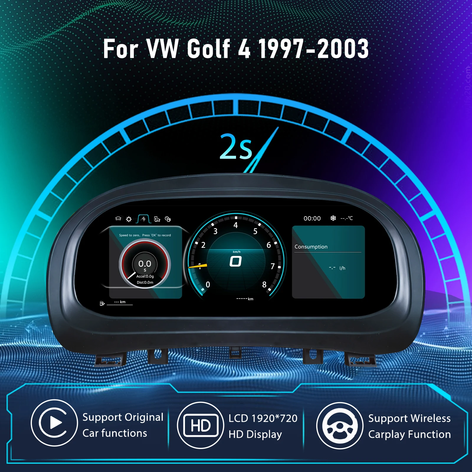 Digitaal dashboardcluster voor VW Golf 4 1997-2003, virtuele cockpit snelheidsmeter instrumentenpaneel