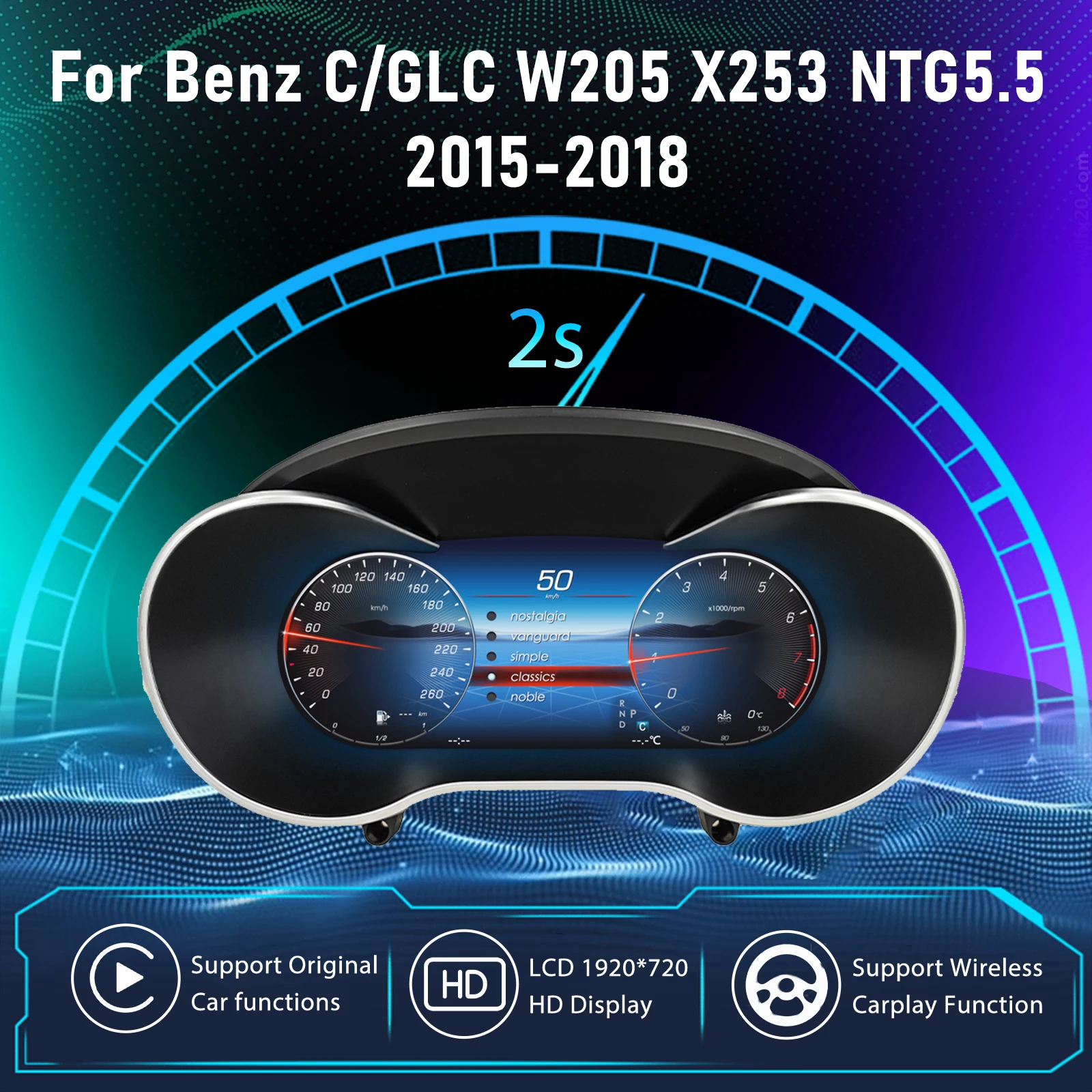 Digitaal dashboardcluster voor Benz C/GLC W205 X253 NTG5.5 2015-2018, virtuele cockpit snelheidsmeter instrumentenpaneel