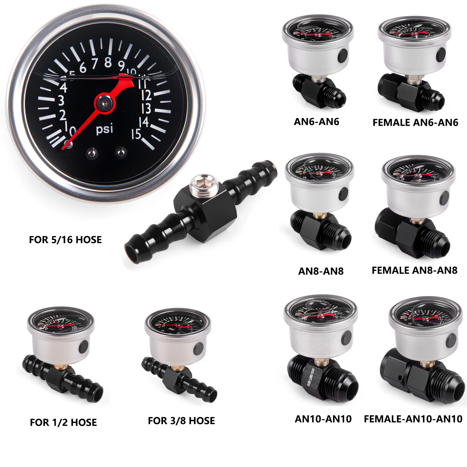Universele brandstofdrukmeter (0-15 PSI) 1/8 NPT met slanguiteinde montageset voor brandstofinjectiesystemen