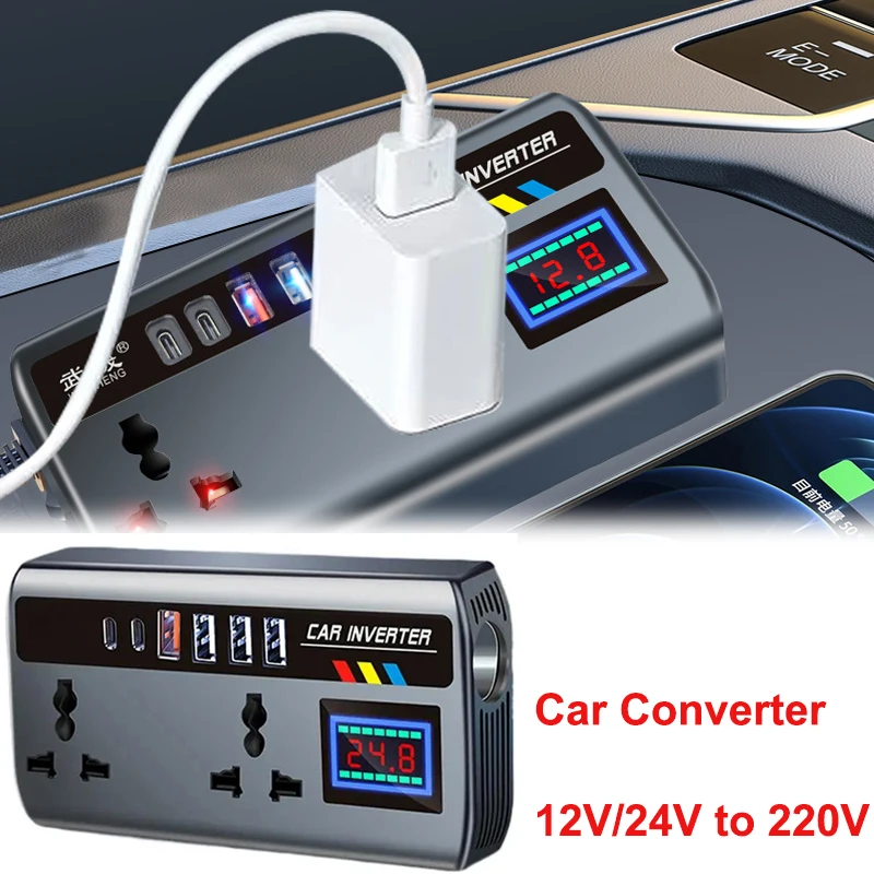 Auto Omvormer Converter 12 V/24 V Naar 220 V Snelle Poorten Automotive Lader Omvormer OC3.0 PD 2TYPE-C Poorten Power Adapter