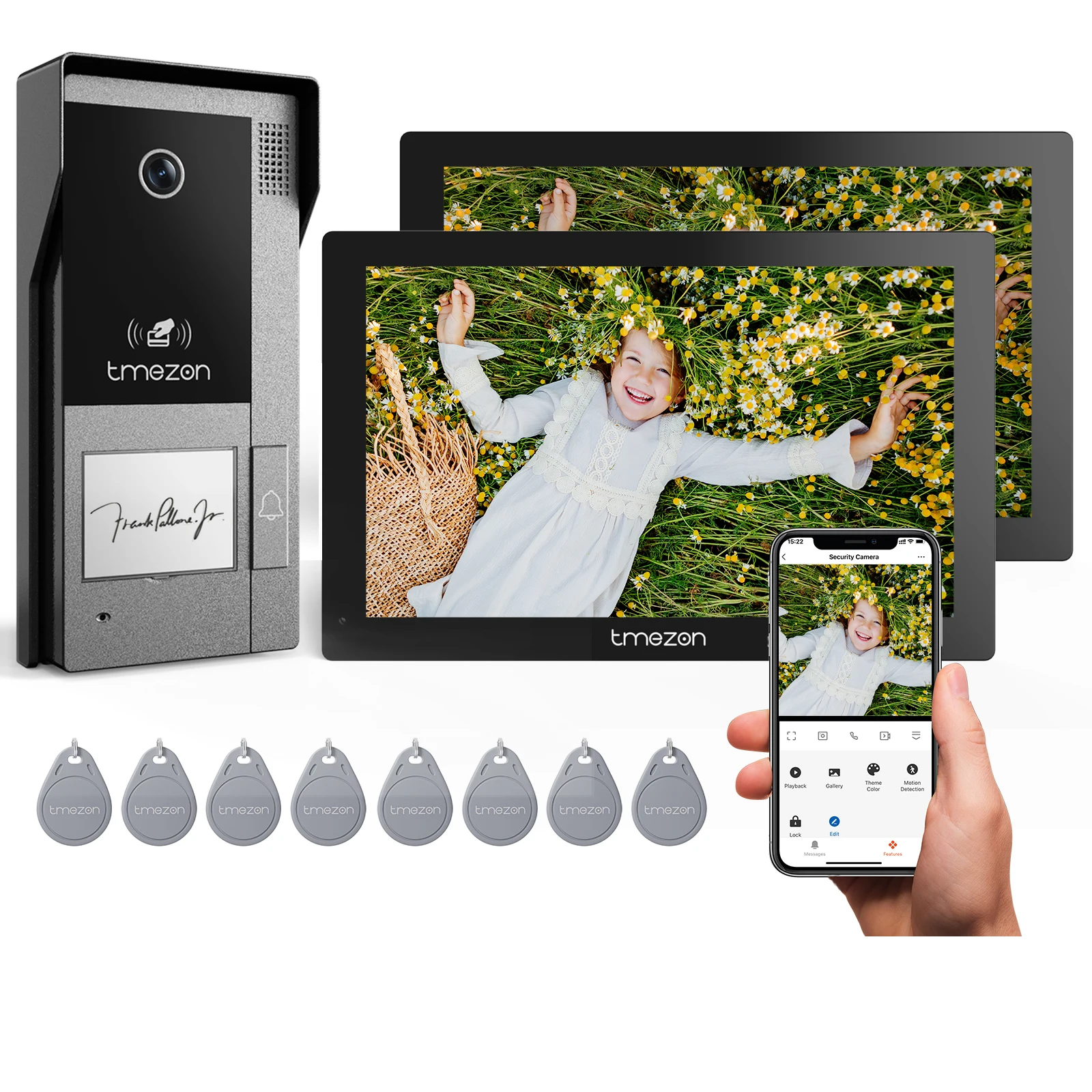 TMEZON WiFi video-intercomsysteem met camera en 7 inch 1080P touchscreen IP bedrade videodeurtelefoon, Tuya, 2 draads, ontgrendeling op afstand