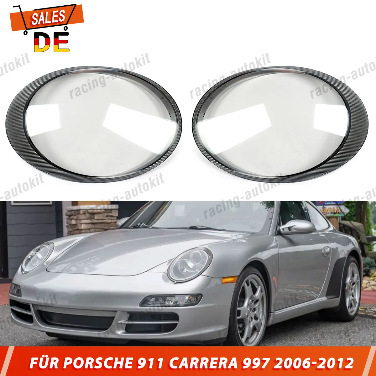 Een Set Lampenkap Koplamp Lens Cover Fit voor Porsche 997 911 Carrera 06-12