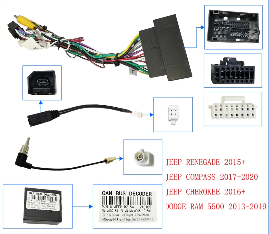 16 Pin Auto Kabelboom Adapter Met Canbus Box Voor Jeep Renegade Wrangler Rubicon/COMPASS/CHEROKEE DODGE RAM 250 500