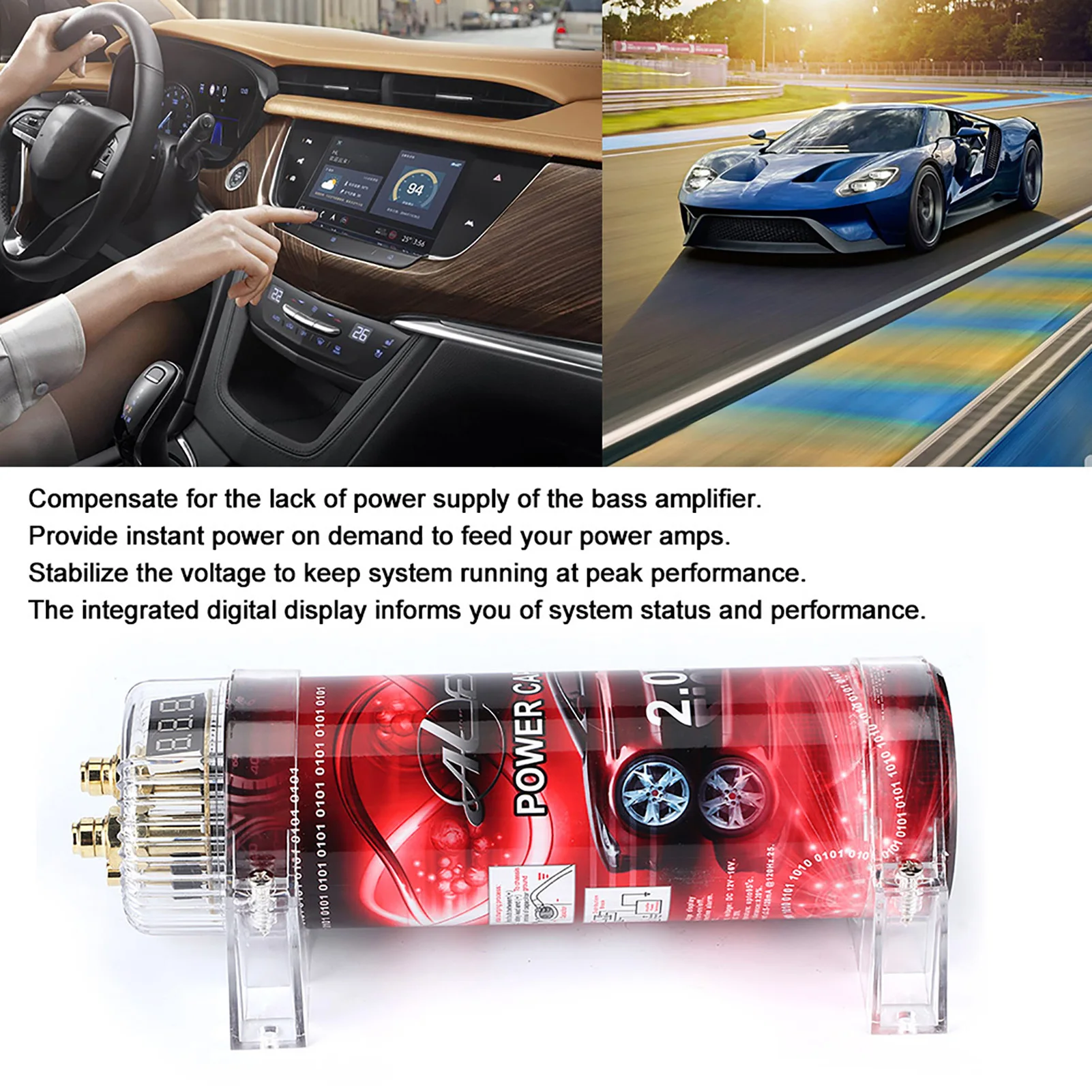 2 Audiocondensator 2 Auto Audio Power Condensator Versterker Spanningsregelaar Rode LED 10-16V Gemodificeerde auto-onderdelen
