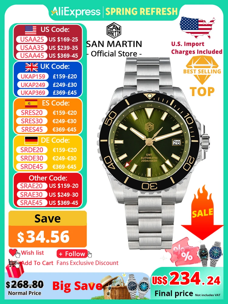 Seestern Duiken Horloge 62MAS Automatische Mechanische Mannen Van Horloges Japan NH35 Uurwerk Saffier Glas Armband Lichtgevende Bezel