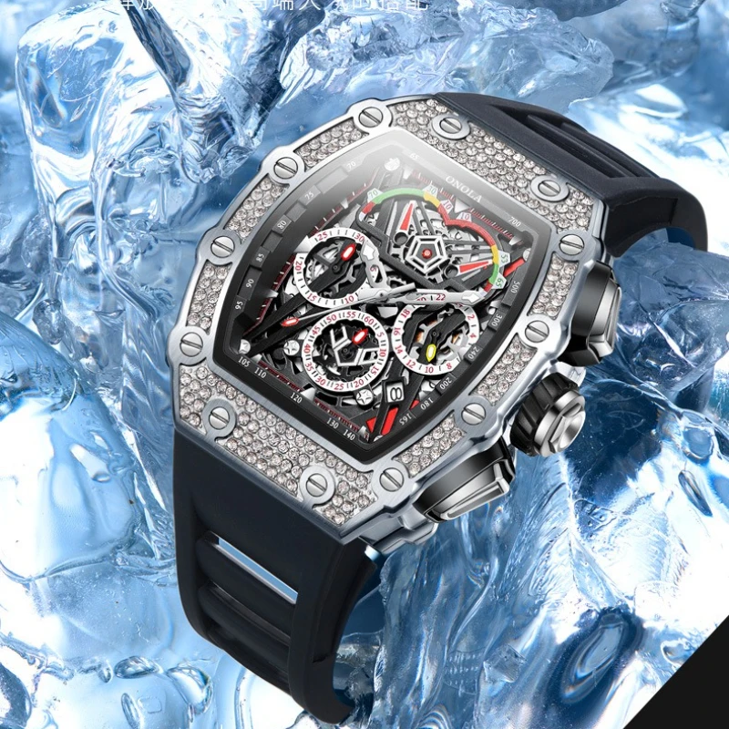 ONOLA 6827D Luxe Wijnvat Volledige Diamond Ontwerp Volautomatische Mechanische Horloge heren Kalender Chronograaf Horloges voor Man