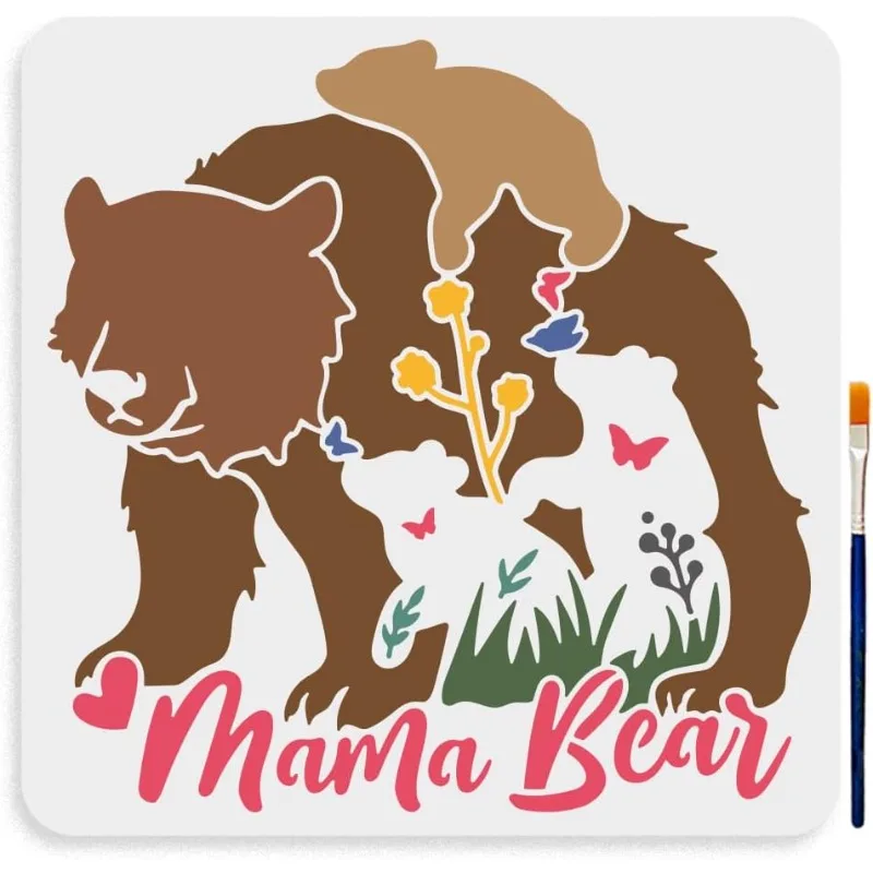 2 Stuks Momma Beer En Welp Stencil 11.8 × 11.8Inch Mama Beer Tekening Stencils Met Schilderij Borstel Bos Dieren Dieren In Het Wild Stencils