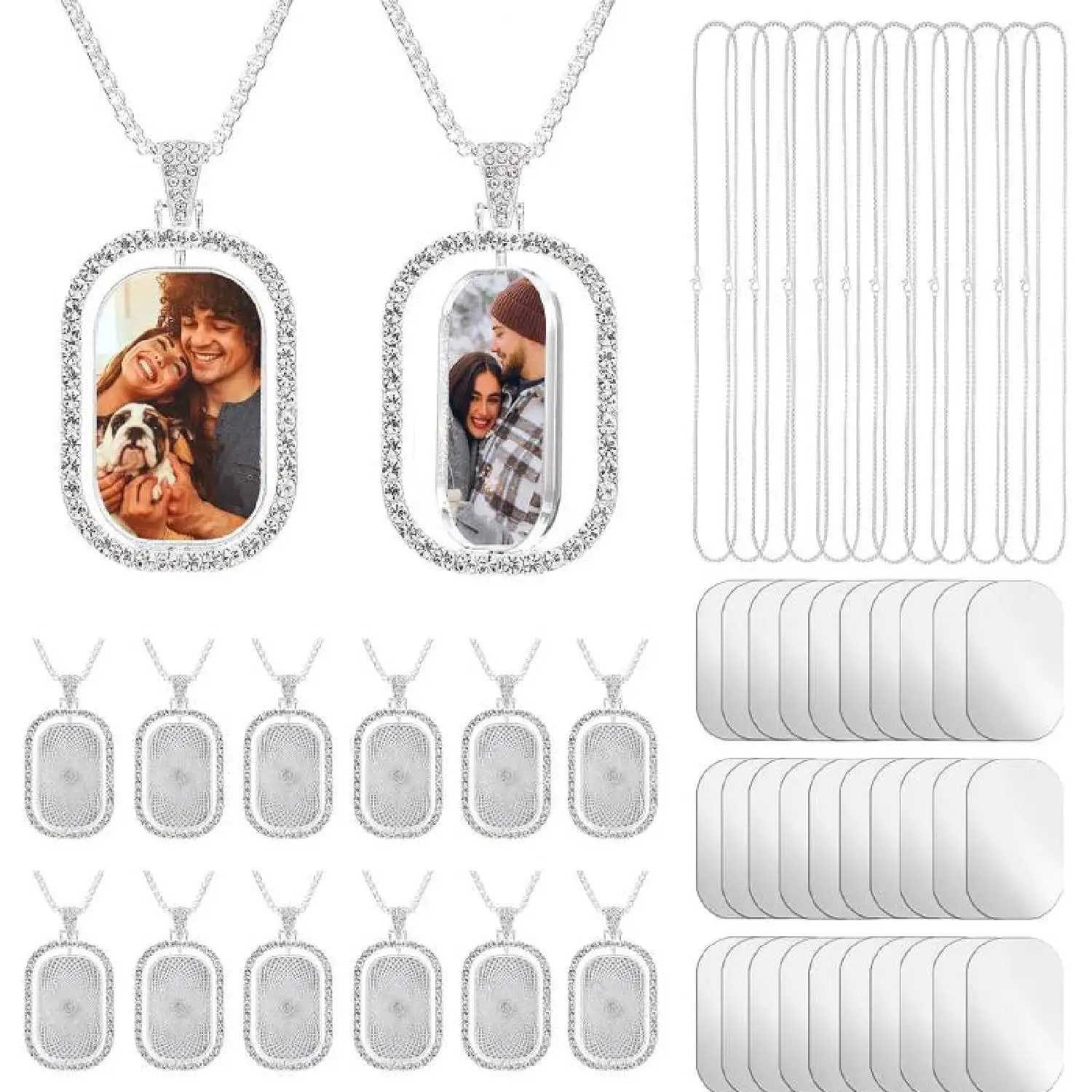 8-delige sublimatie ovale hangerset – 2 blanco ovale randen, 2 dikke kettingen en 6 sublimatieschijven inbegrepen voor doe-het-zelf maken