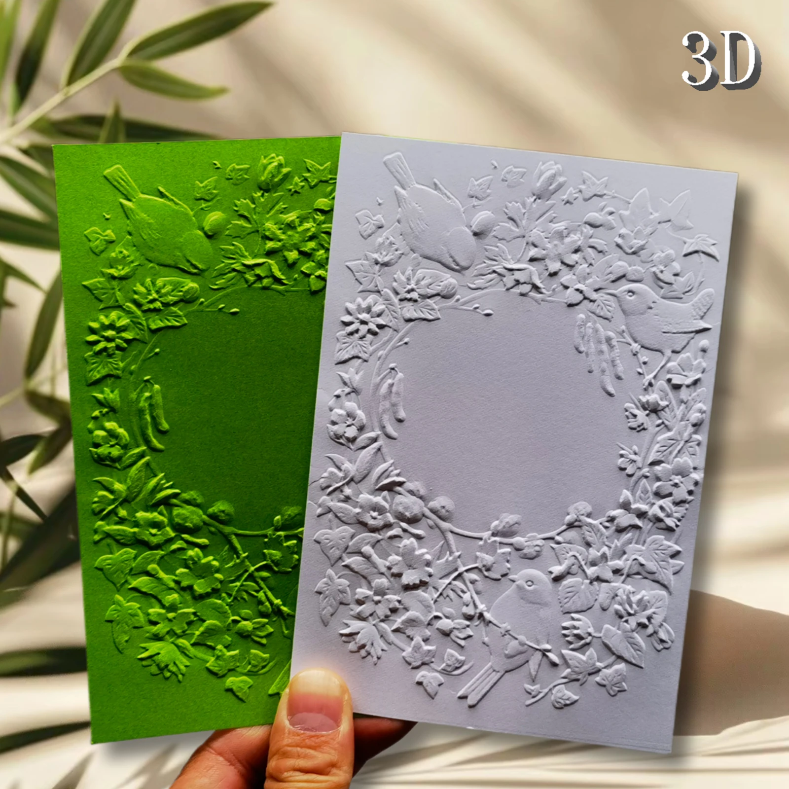 3D-map met reliëf en structuurachtergrondontwerp voor "Bloemen en vogels die samen in een ring weven, gebruikt om toe te voegen