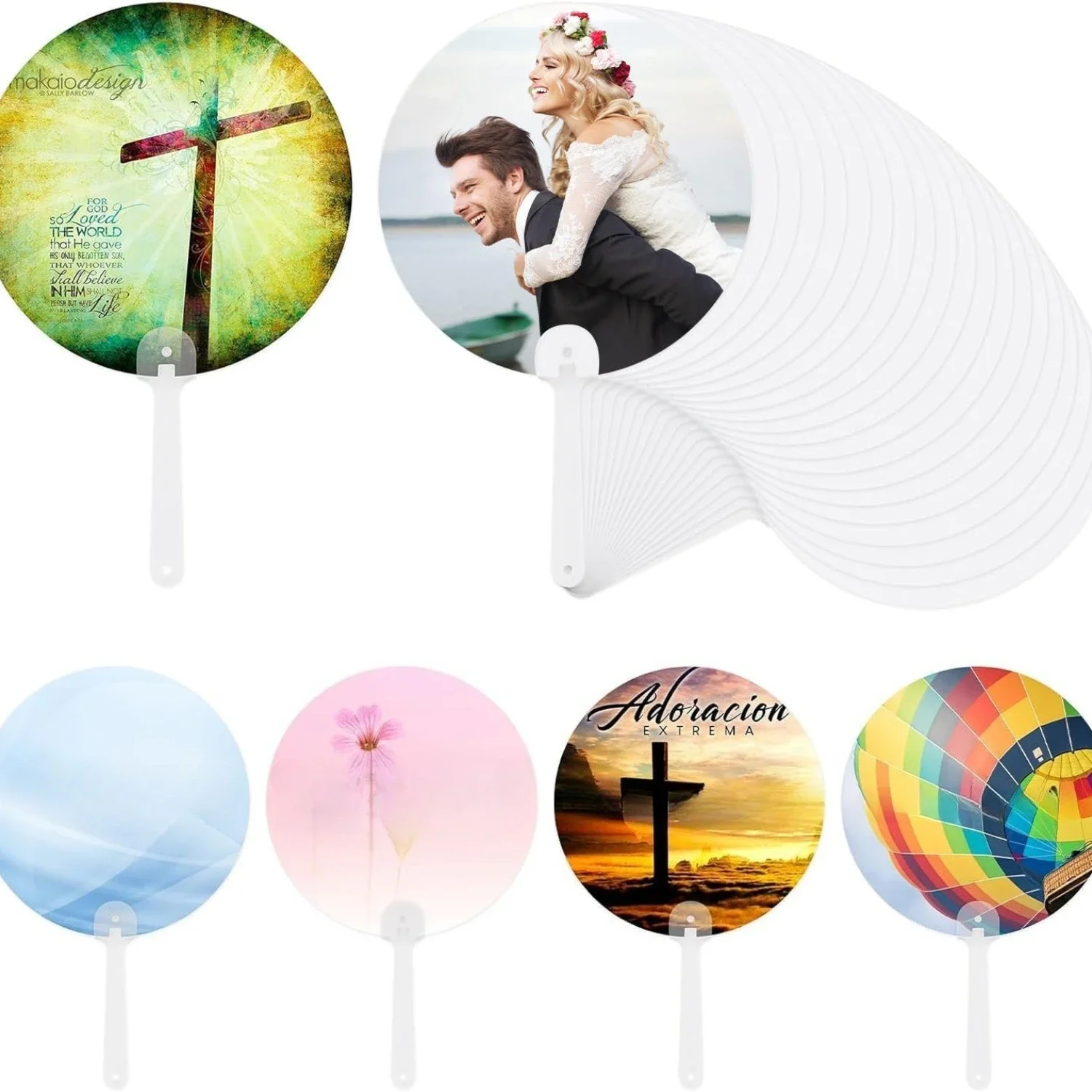 5 stuks ronde blanco handventilatoren – sublimatieventilatoren voor doe-het-zelf warmteoverdracht en evenementengebruik