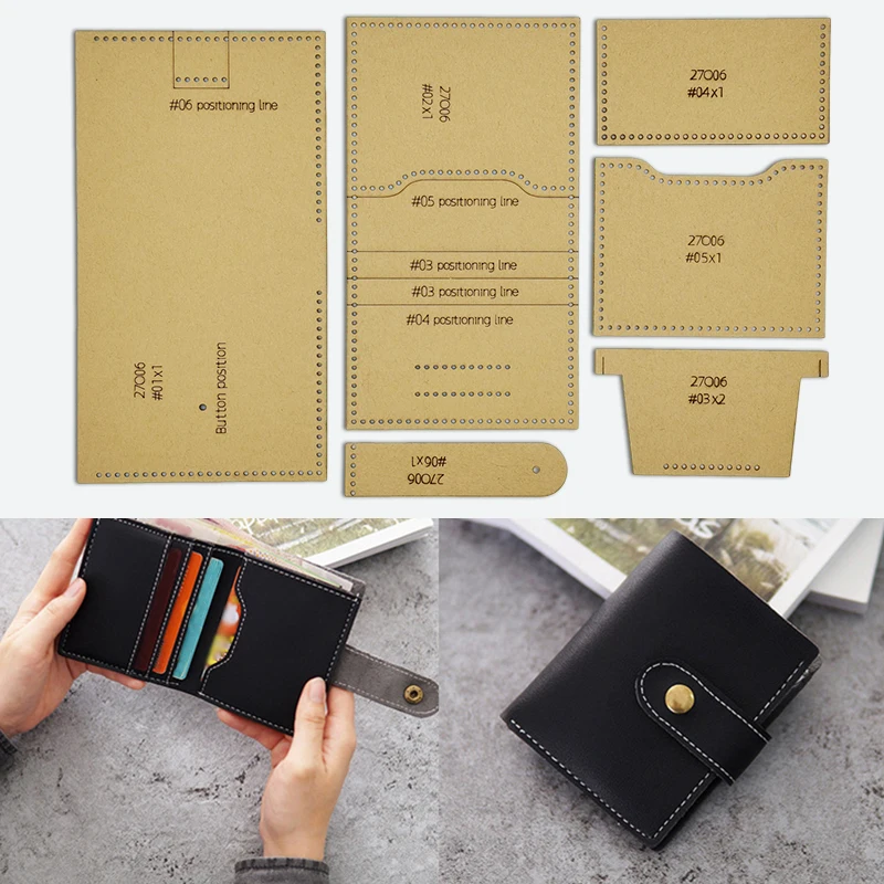 YOMDID 6PCS handgemaakte multi-kaart portemonnee maken kraft sjabloon DIY korte portemonnee maken kraft stencil handgemaakte Leathercraft Kit