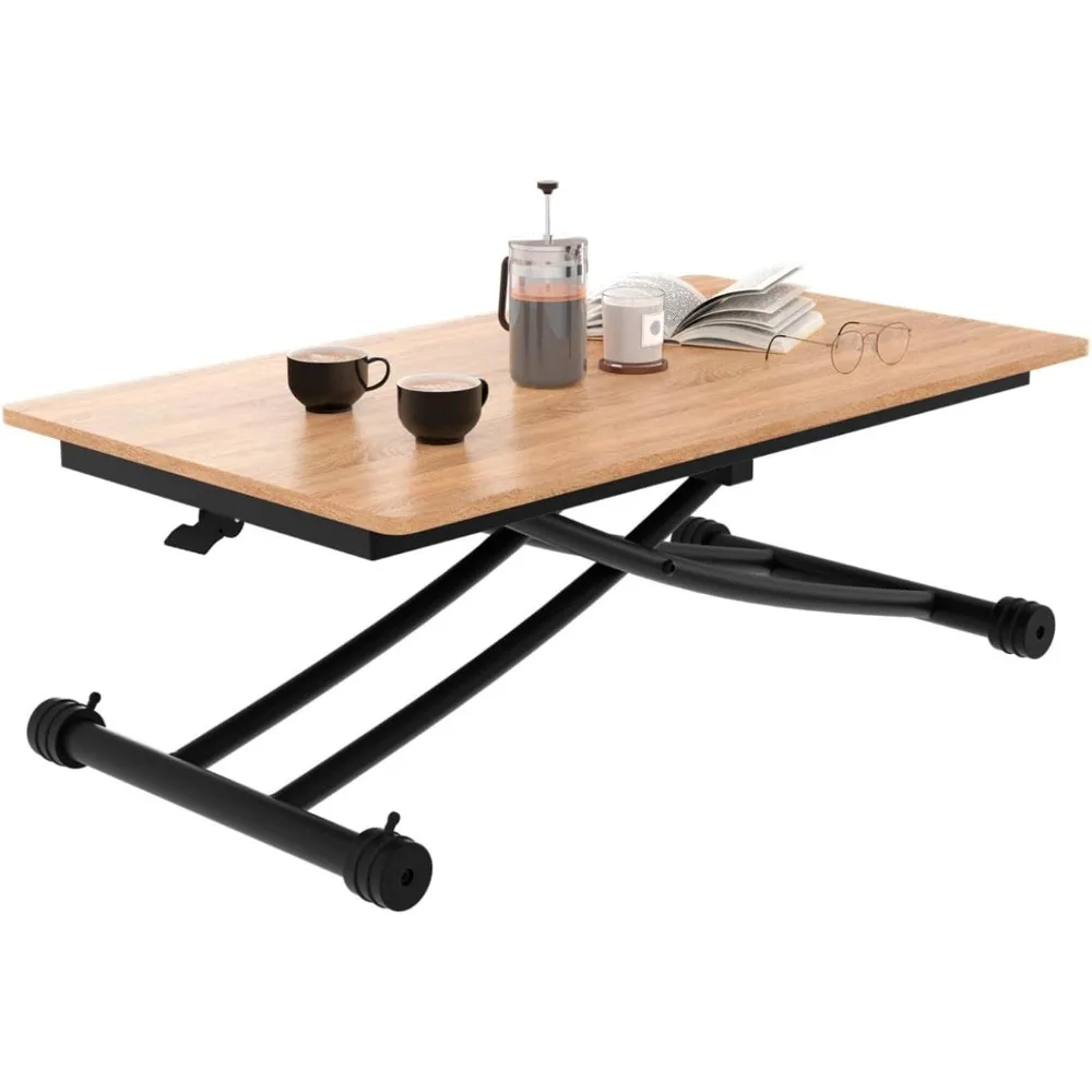 Verhoogbare Mesa de Comedor Rechthoekige Urbana, Tapa Madera Haya, Pie Negro Dise?o Industrial