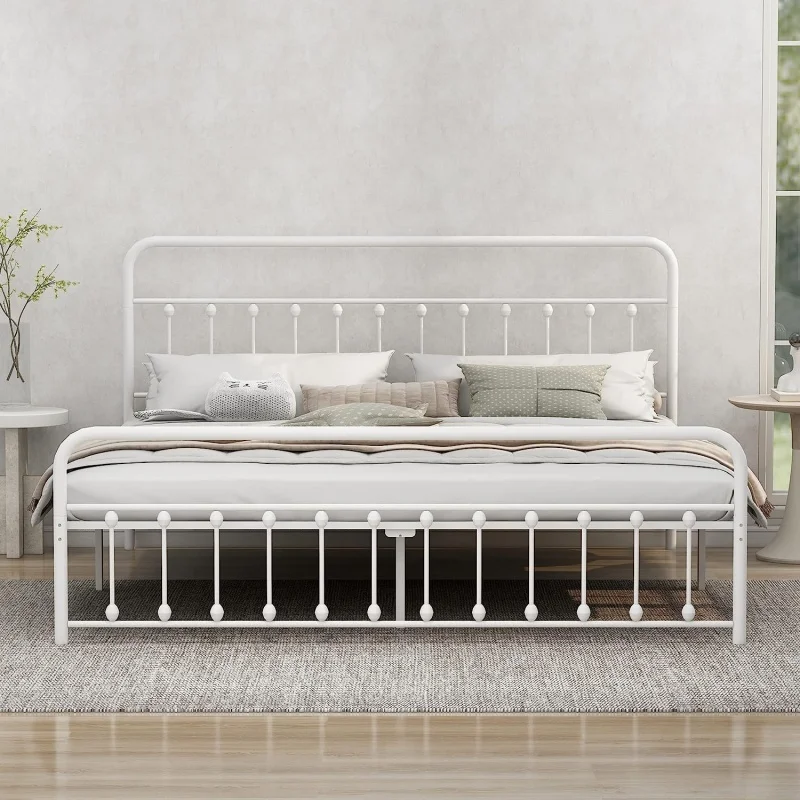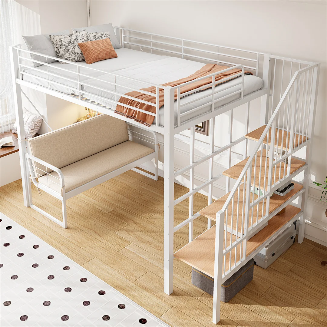 Tweepersoonsbed, jeugdbed, 140 x 200 cm, stevig metalen bedframe, verhoogd bed met afneembare zachte, gestoffeerde bank.
