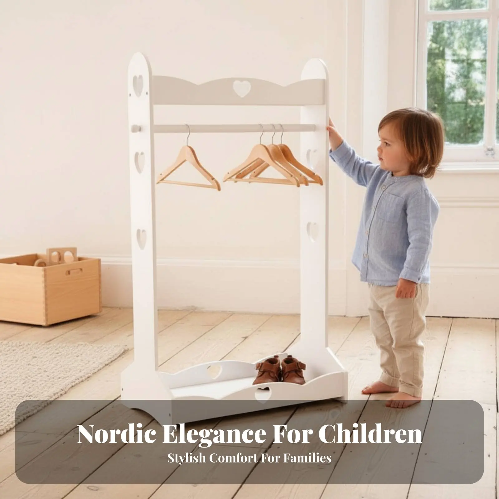 Mobiel kledingrek voor kinderen Hoogte geschikt voor kinderen Verkleedstation voor jonge kinderen Stevige constructie Sterk draagvermogen