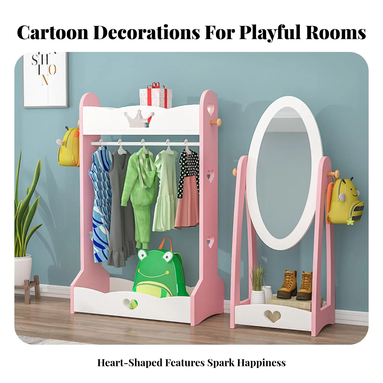 Kinderkostuumrek Schattig ontwerp Toegankelijke kindergarderobe Stabiel frame Ruimtebesparend voor speelkamer, kinderkamer
