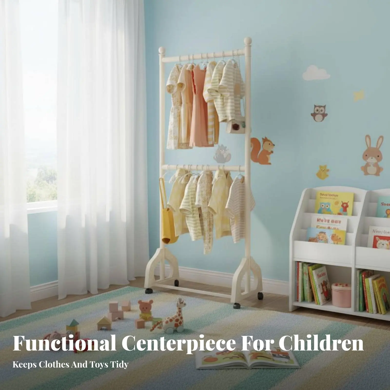 Kinderkledingrek Kinderveilig ontwerp Zelfdragend staand kinderkledingrek Eenvoudige montage Stabiele basis voor slaapkamer