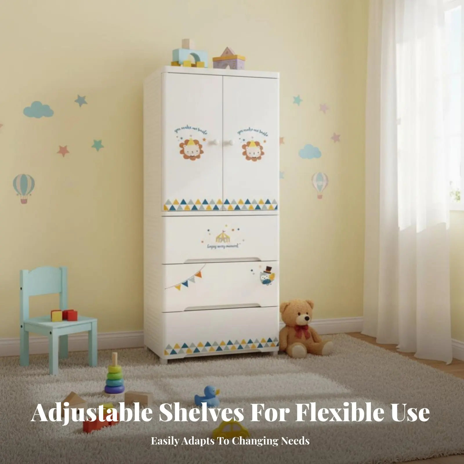 Opbergkast met meerdere vakken, grote capaciteit, cartoon-ladekast, gemakkelijk schoon te maken, met wielen voor ouders, slaapkamer