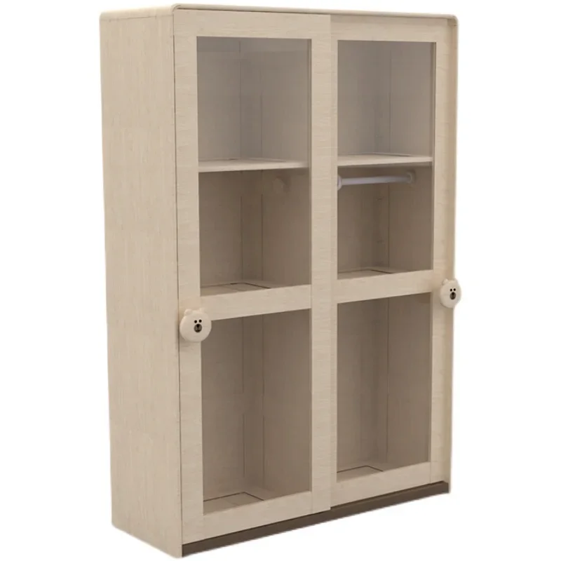 Schuifdeurkast voor kinderen Harde esdoorn massief houten kledingkast transparante vitrinekast huishoudelijke eenvoudige vitrinekast