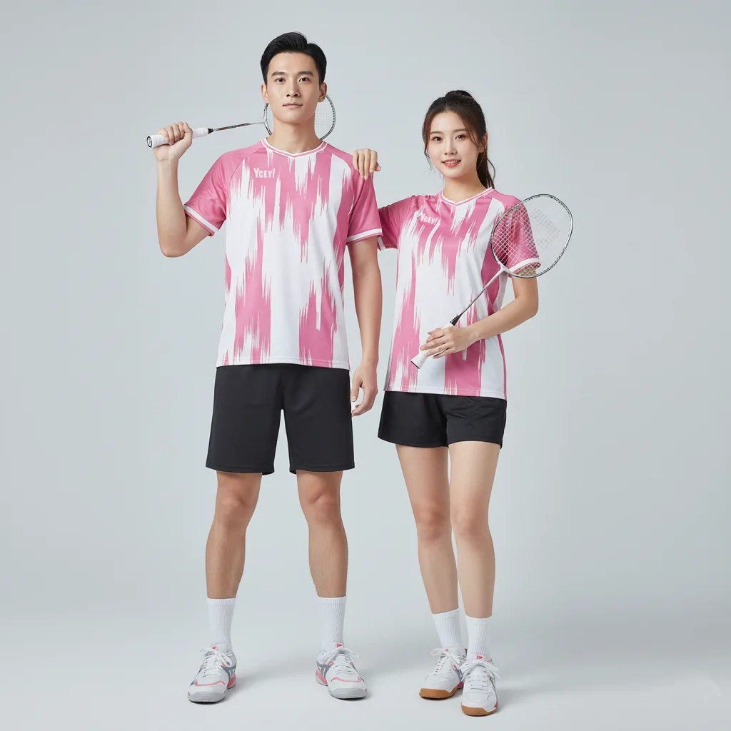 Nieuwe Badminton Tops Tennis Tafeltennis Sportkleding Trainingspak met korte mouwen Ademend Sneldrogend Zweetabsorberend T-shirt