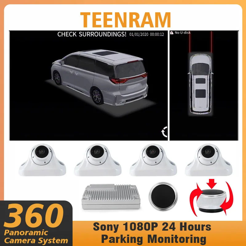 TEENRAM 3D Pro Bird's Eye View Sony 1080P 24 uur parkeerbewaking DIY kleur auto-accessoire 360 panoramisch camerasysteem