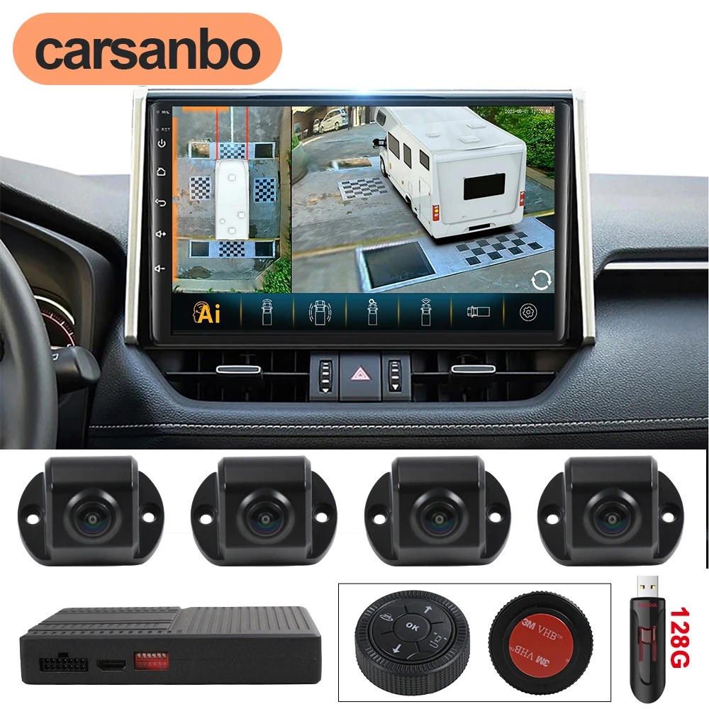 Carasanbo Bus Track VR AI 360 Panoramisch Systeem 3D Bird Eye View Camera Parkeermonitor Systeem HD 1080P Surround View Camera