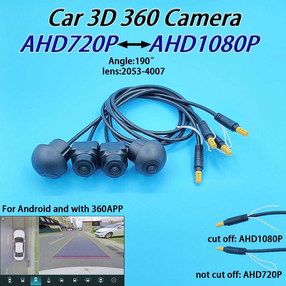 Auto 360 graden panoramische camera 3D AHD 1080P 4 camera's auto rondomzicht voor Android radio en 360APP 12V 12PIN 25FPS HD nachtzicht