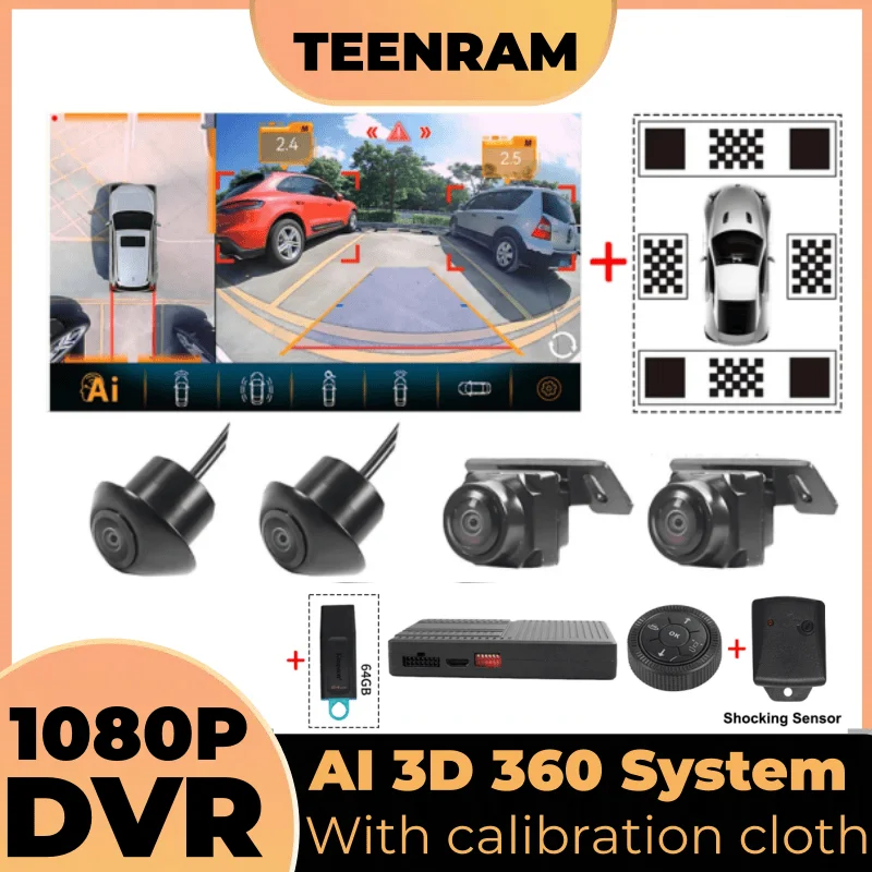 Voor Android Radio Auto 3D Ai 360 Surround View Bird View Camera Systeem 1080 P Met kalibratie doek/64G USB/Schokkende Sensor