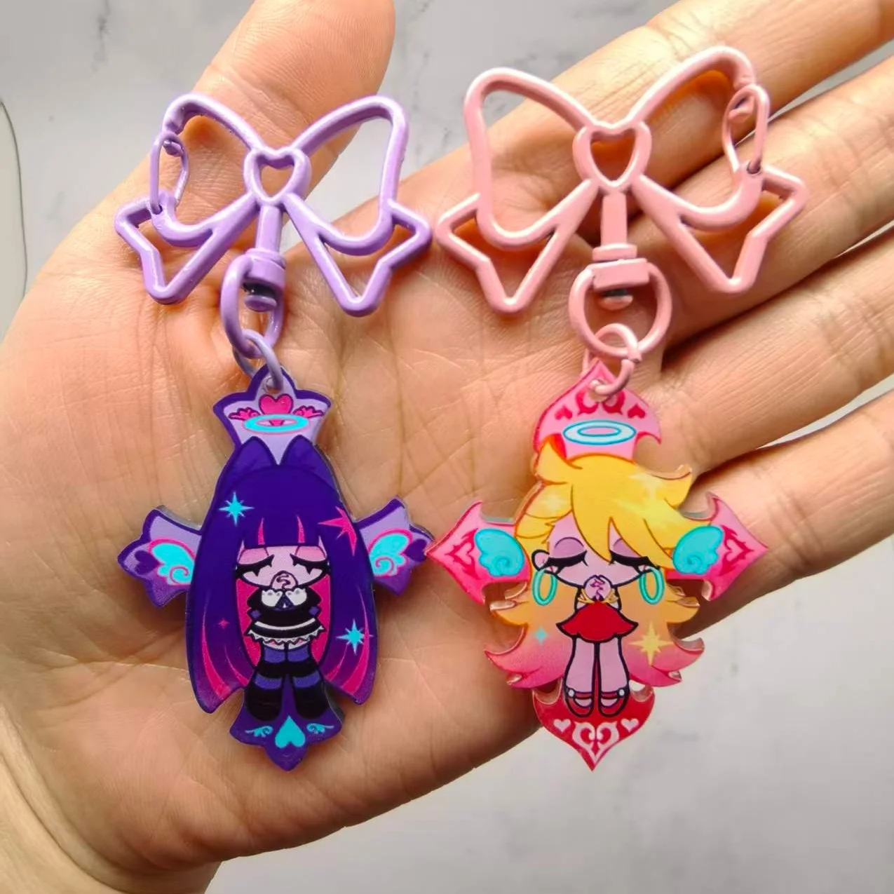 Anime Panty & Kous met Garterbelt Strik Sleutelhanger Kawaii Figuur Acryl Sleutelhangers Rugzak Hanger Voor Fans Kerstcadeaus