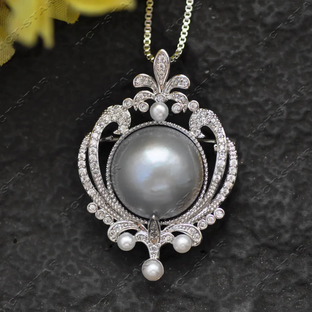 Z14429 40 mm grijze Zuidzee Mabe Pearl Byzantijnse glans CZ hangerbroche