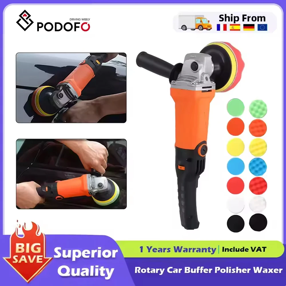 Podofo Rotatiepolijstmachine, -waxer, 8800 RPM, variabele snelheid, afneembare handgreep, perfect voor het polijsten en waxen van boten en auto's
