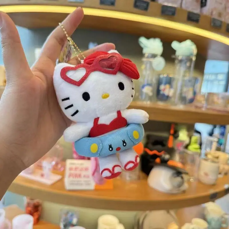 Sanrio Hello Kitty Cartoon Pluche Serie Pop Vulling Sleutelhanger KT Kat Sleutelhanger Hawaii Zwemring Serie Donkere Huid Speelgoed Verjaardagscadeau