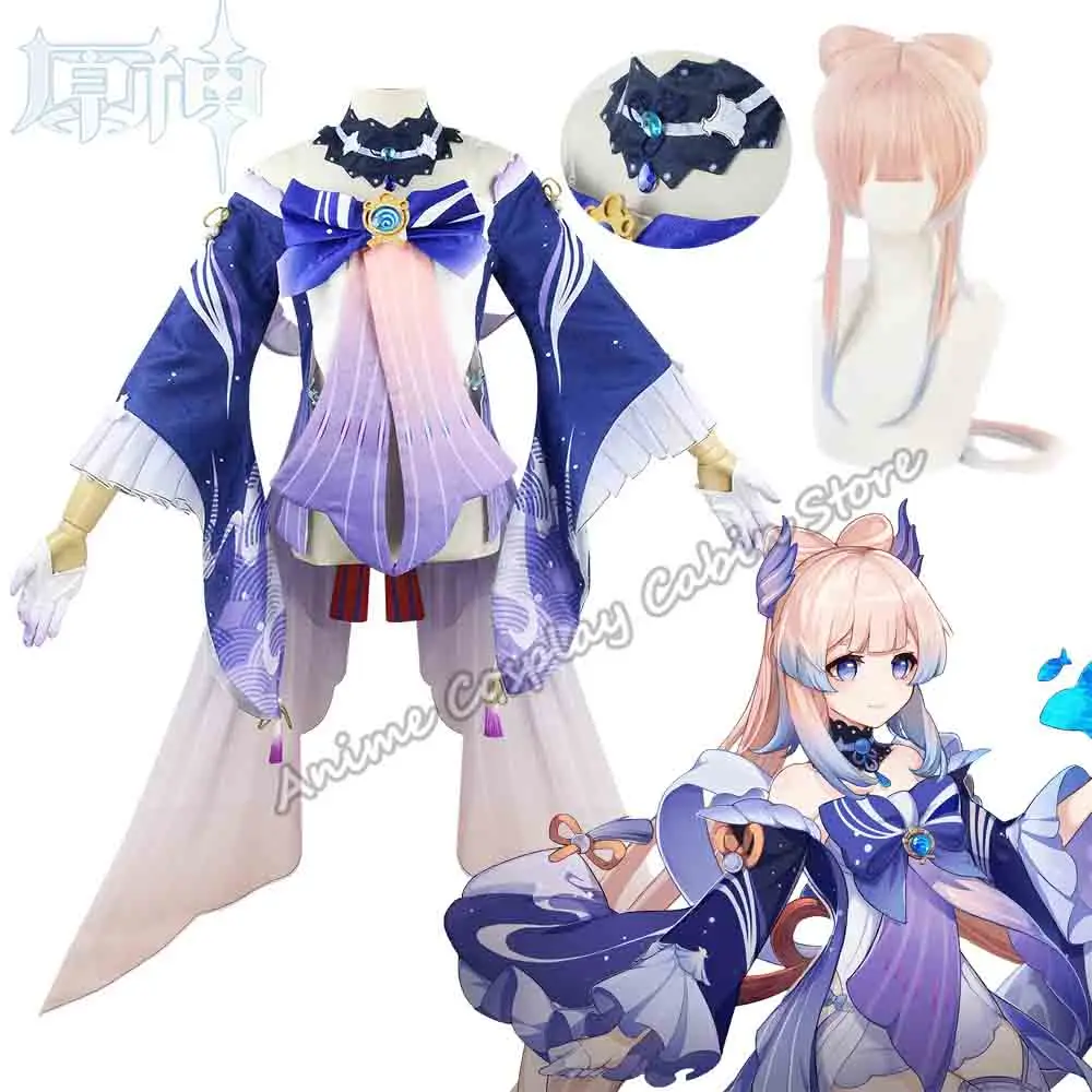 Sangonomiya Kokomi Cosplay Game Genshin Impact Kokomi Sangonomiya Cosplay Kostuum Pruik Uniform Halloween Kostuums voor Vrouwen Meisjes