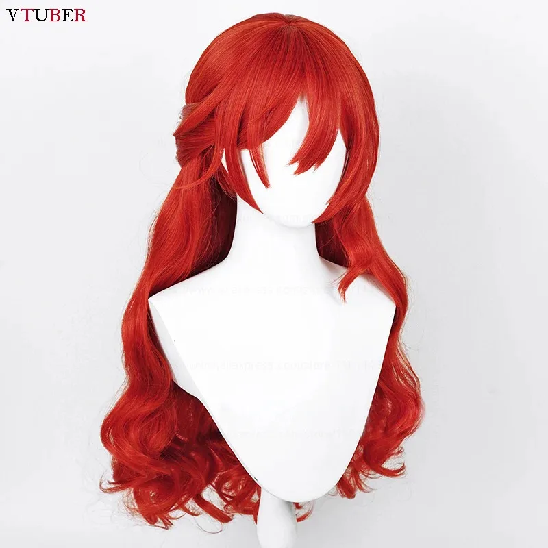 Nieuw model cosplay hoge kwaliteit spel Himeko rood krullend lang met knot hittebestendig synthetisch haar Halloween pruiken + pruik