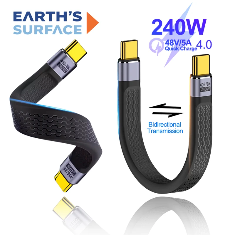 PD 240W USB4 korte kabel 40Gbps gegevensoverdracht snel opladen Thunderbolt 3/4 interface platte USB-C-snoer voor laptop telefoon tablet