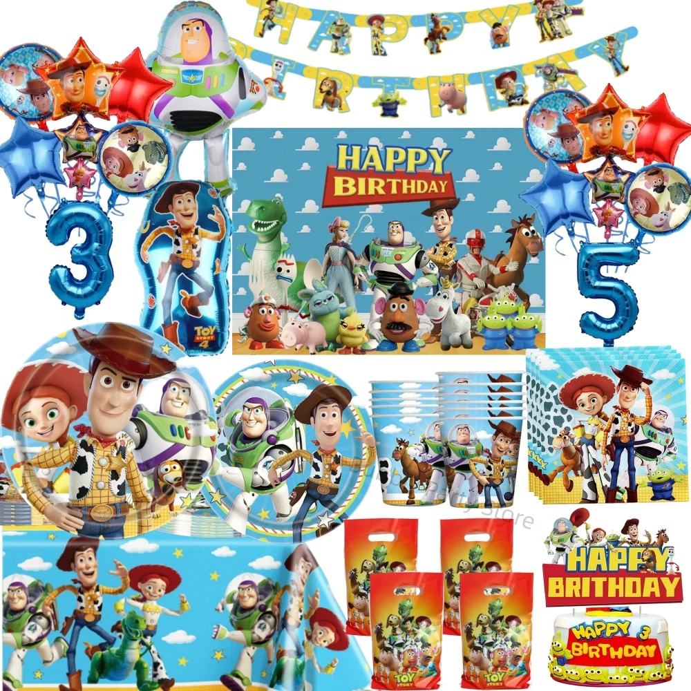 Toy Story Verjaardagsfeestje Decoraties Woody Buzz Lightyear Ballonnen Bestek Snap Armband Taart Topper Stro Bril Babyshower