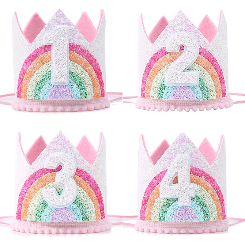 1 Stuks Vilt Regenboog Kroon Meisjes 1e 2e Verjaardagsfeestje Foto Rekwisieten Decoraties Kids Baby Shower Party Nummer Hoed Eenhoorn Party