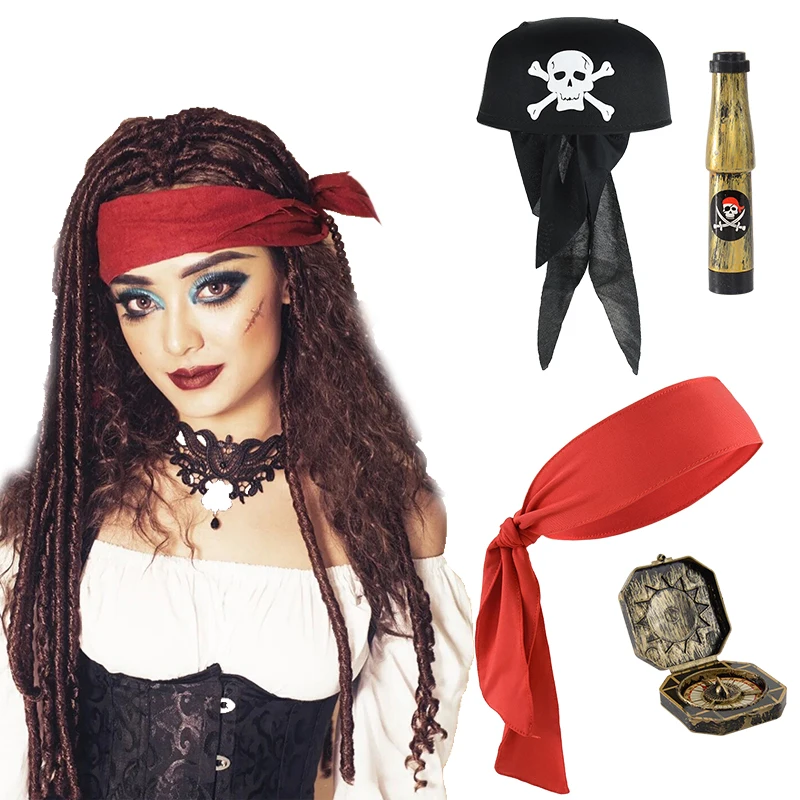 Halloween Rood Zwart Hoofddoek Piraat Oogmasker Set 2025, Kinderen Rollenspel Fotografie Props Halloween Party Decoratie Benodigdheden