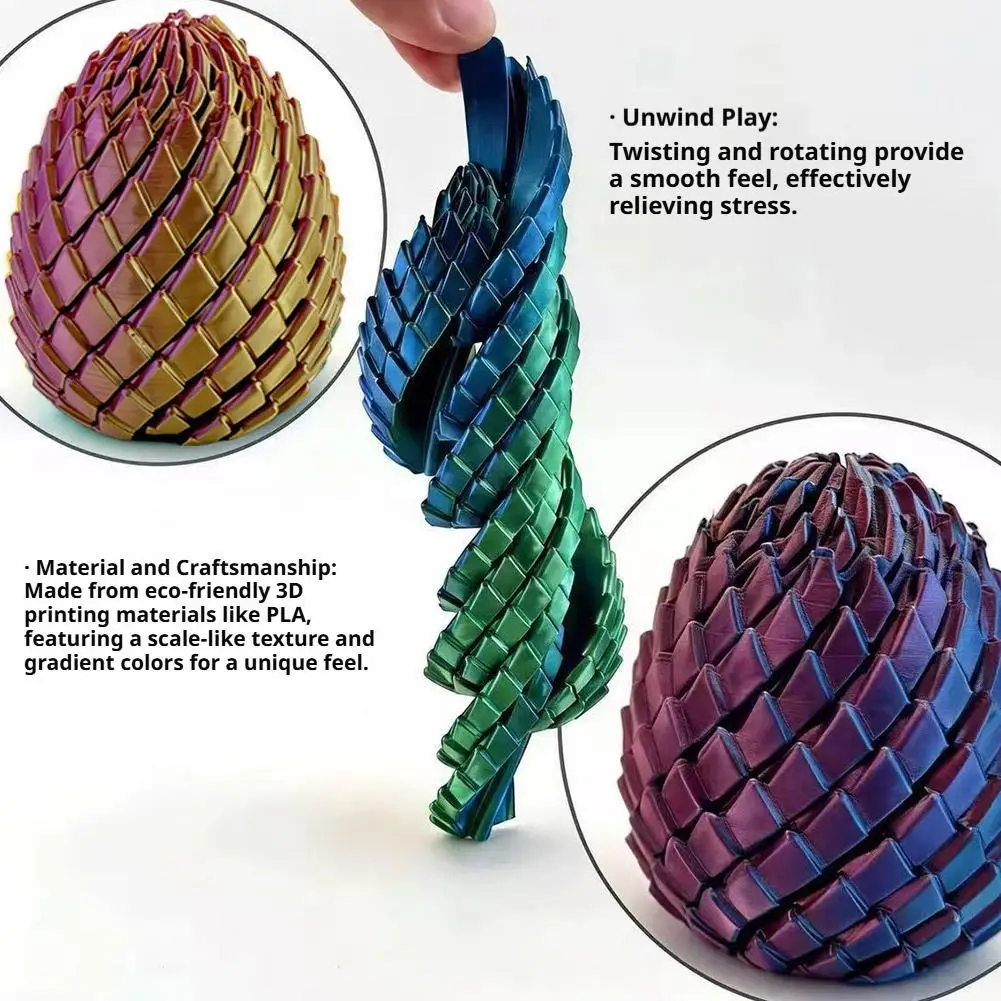 3D-geprint drakenei stress speeltje, articulerend, rekbaar, sensorisch fidget speeltje, vervormbaar drakenei cadeau voor kinderen en volwassenen