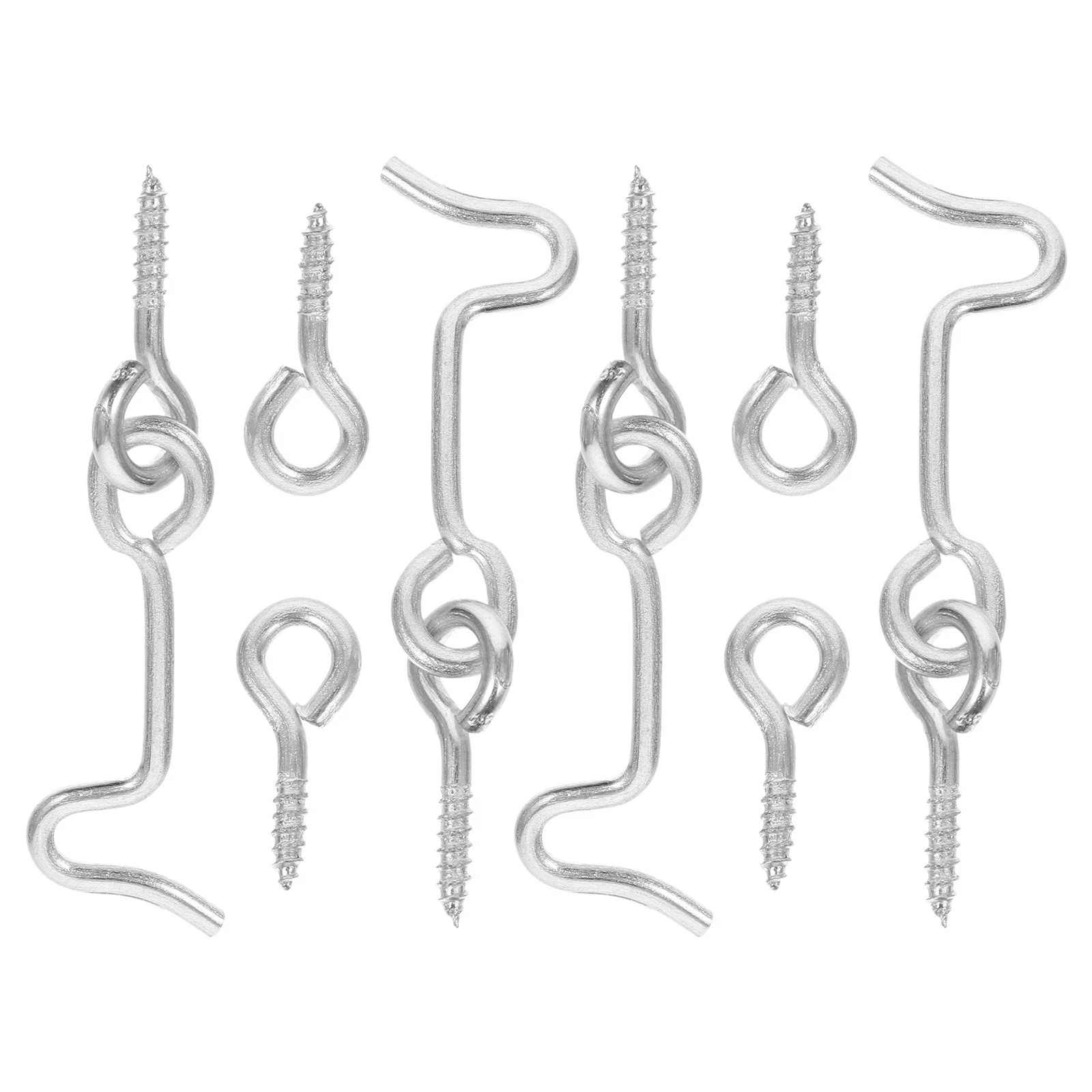 4Sets Deurhaak Koolstofstaal Stevige haak en oogsluiting Cabinedeurslot Klink Raamsloten Winddichte raamsloten
