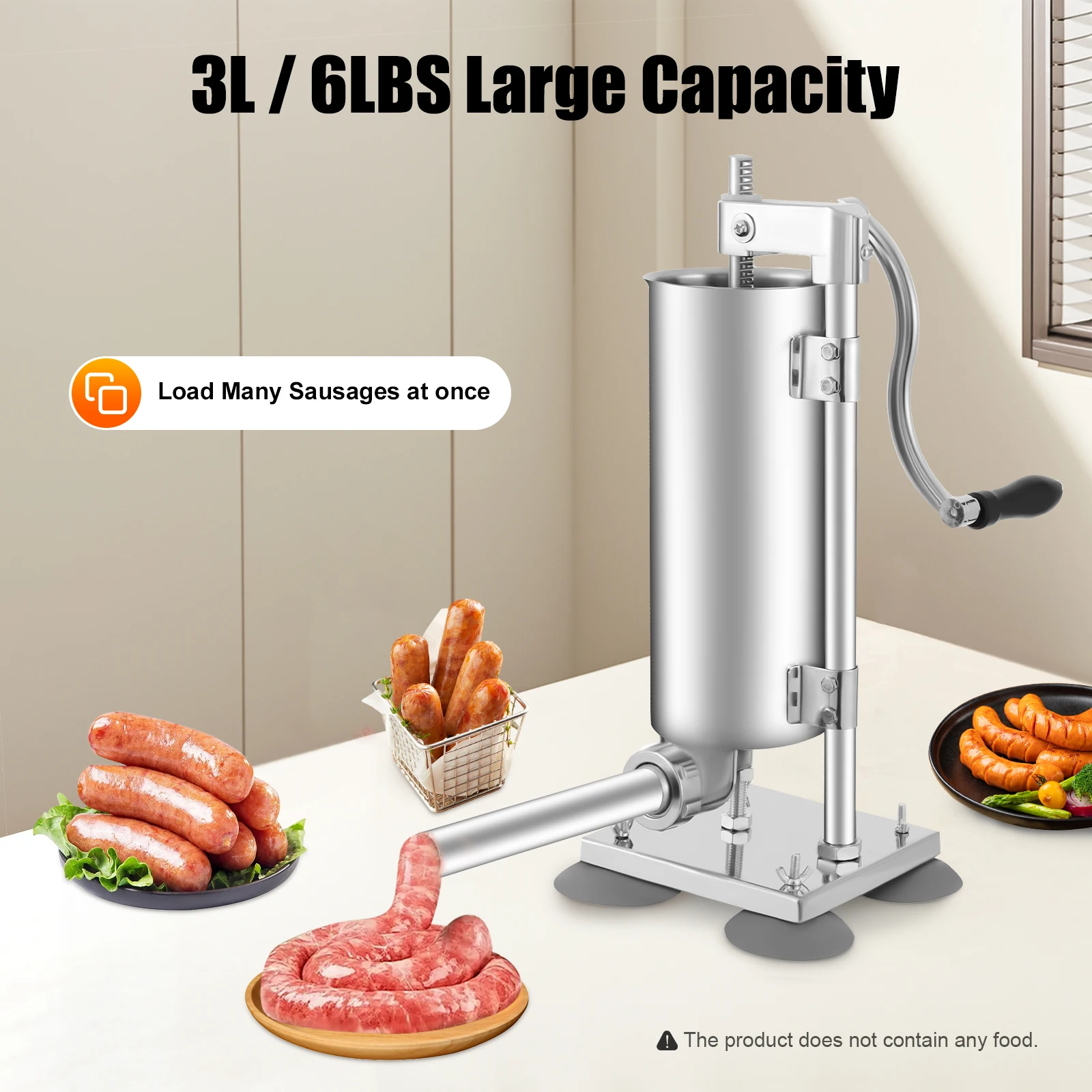 6 lbs handmatige worstvuller roestvrijstalen verticale worstvuller met 6 buizen en duwer voor commercieel gebruik in de keuken