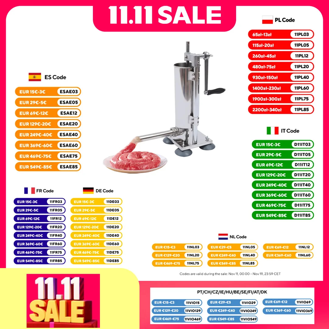 SucceBuy 3 5L handmatige worstvuller roestvrij staal maken worst verticale maker met 5 vultrechters voor thuis commercieel