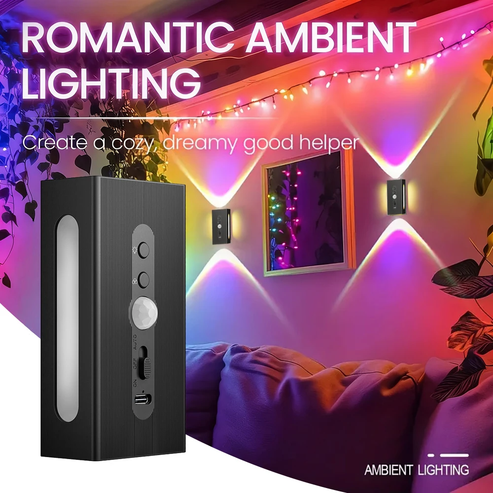 Outdoor LED-wallwasherverlichting met bewegingssensor Home Landscape Oplaadbare nachtverlichting 4-straals waterdichte spotlight voor veranda