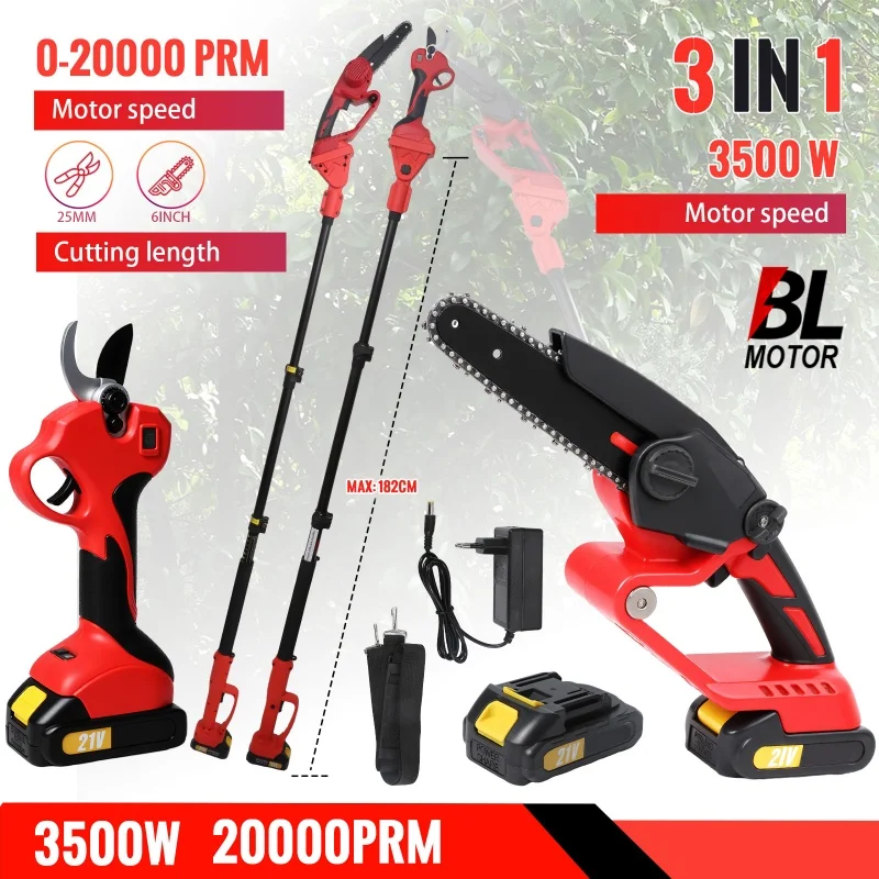 Borstelloze 3500W Elektrische Kettingzaag Telescopische Paal 3 IN 1 Snoeischaar Hoge Tak Zag Tuin Boom Snoeien Tool voor Makita Batterij