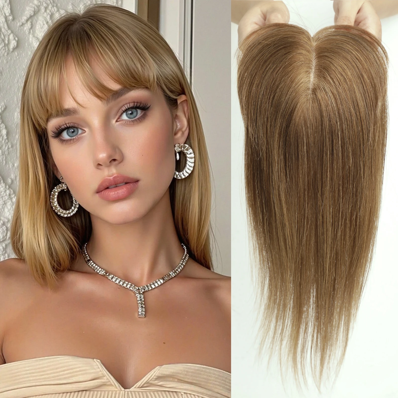 100% Echt Menselijk Haar Toppers met Pony Zijde Basis 3Clip Stukken Bruin Blond Recht Menselijk Topper Haren voor Vrouwen Haarverlenging